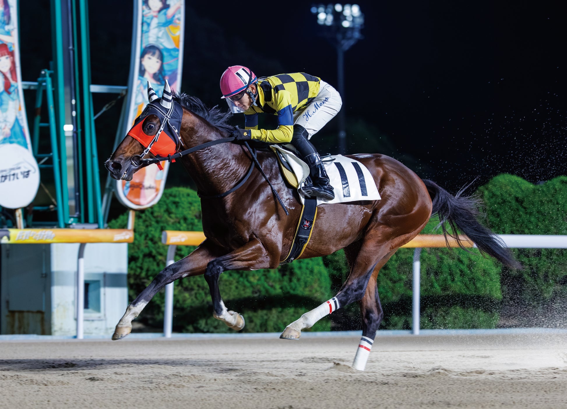 2025年11月2日佐賀競馬7R「SPAT4プレミアムポイント賞C2-7組」にて積極的な先行策で見事勝利を挙げたオールスティール号の額装を製作いたしました。